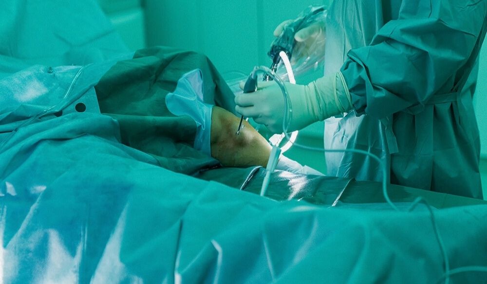 Medizinische Illustration eines Seitenbandrisses am Knie